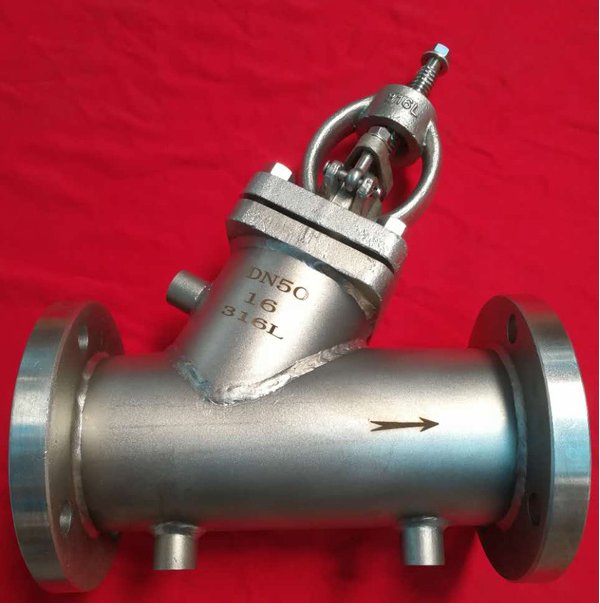 BJ45直流式保温截止阀是根据Y型截止阀两法兰之间焊装夹套,阀门的侧面、底部设置有保温夹套的两个连接口,用于注入蒸汽或其它保温、保冷介质,采用保温夹套设计,利用外部热源在阀门的外部循环加热,可以有效防止介质通过阀门时温度损失,保证介质的温度。主要用于石油、化工、沥青、冶金、制药、食品等各类系统中,防止以输送常规下会凝固的高粘度介质回流。