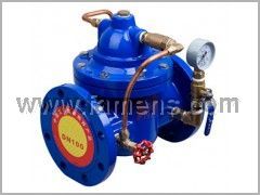 当阀门从进口端给水时,水通过微型过滤器、针型阀、单向阀进入主阀控制室,再经过球阀排水至下游。因为针型阀开度小于球阀开度,即主阀控制室的排水速度大于进水速度,因此控制室压力降低,作用于主阀盘下端的进口压力打开主阀向下游供水。