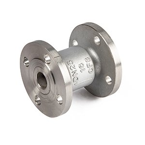 用于介质单向 流动的管道上,只允许介质向一个方向流动,以防止发生事故,并从进口侧流向出口侧。当进口侧压力低于出口侧时,阀瓣在流体压力和本身重力的作用下自动的将通道关闭。