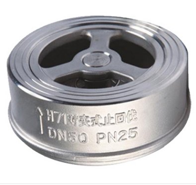对夹式止回阀属于止回阀。用于防止介质倒流。通过选用不同的材质,可适用于水、蒸汽、油品、硝酸、醋酸、强氧化性介质及尿素等多种介质。
