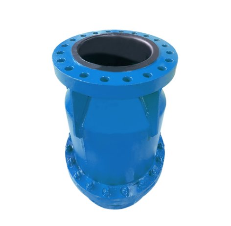 此款产品为立式衬胶止回阀,安装时有方向要求不可装反。一般安装在水平管道上,为旋启式碳钢铆焊结构,整个阀体内表面衬有特种橡胶,结构简单、紧凑,无需其它控制结构,安装维修方便。