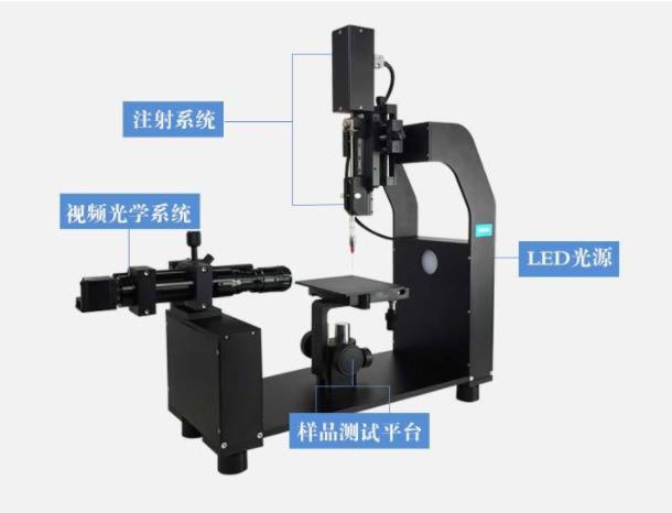 另外一种方法,并不是非要压片的非常好才可以测量。压片影响了表面粗糙度,对实际结果也有影响。因此对于视频光学接触角测量仪测量接触角,这种粉末性的物质可以采用两种方法,**种,对于疏水性比较强的物质,采用直接测量法,减少液体体积,直接测量。第二种对于接触角比较小的物质,尽量压缩成块,不必非常密实,可以直接测量,如果不好测量还有一种方法,称为捕获气泡法,将样品置于液槽之中,通过向样品鼓气泡,*后测量形成的液泡也可以计算出接触角。