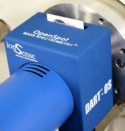 DART®-OS为2012年美国匹兹堡会议上面世的第五代实时直接分析(DART)新产品,为当今常压敞开式原位电离质谱技术的典型代表,继承了DART技术的现场、直接、快速、原位分析的特点,但更经济、绿色、便捷和多样性。使用OpenSpot™ 样品卡,轻松将液体或固体样品滴蘸到目标筛网中央,插入DART®-OS卡槽,即可瞬间进行快速分析。DART®-OS原理是在常压条件下,载气(如氦气或氮气)经放电产生的激发态原子,在常温或至550摄氏度条件下解吸并离子化样品中的化合物,以质谱检测。由于溶剂、基质、盐类等对离子化过程不产生抑制效应,因而该技术不需要对样品基质进行冗繁的分离或制备。通过基于苹果iPod Touch 图形化的操作界面,DART®-OS与单级或多级质谱联机,利用其广谱的原位电离、简化的样品预处理、直接快速的进样分析和质谱仪的各种先进的扫描功能,实现样品中痕量、超痕量的有毒有害、营养和功能成分的快速筛选、快速鉴定和高通量定量分析。
