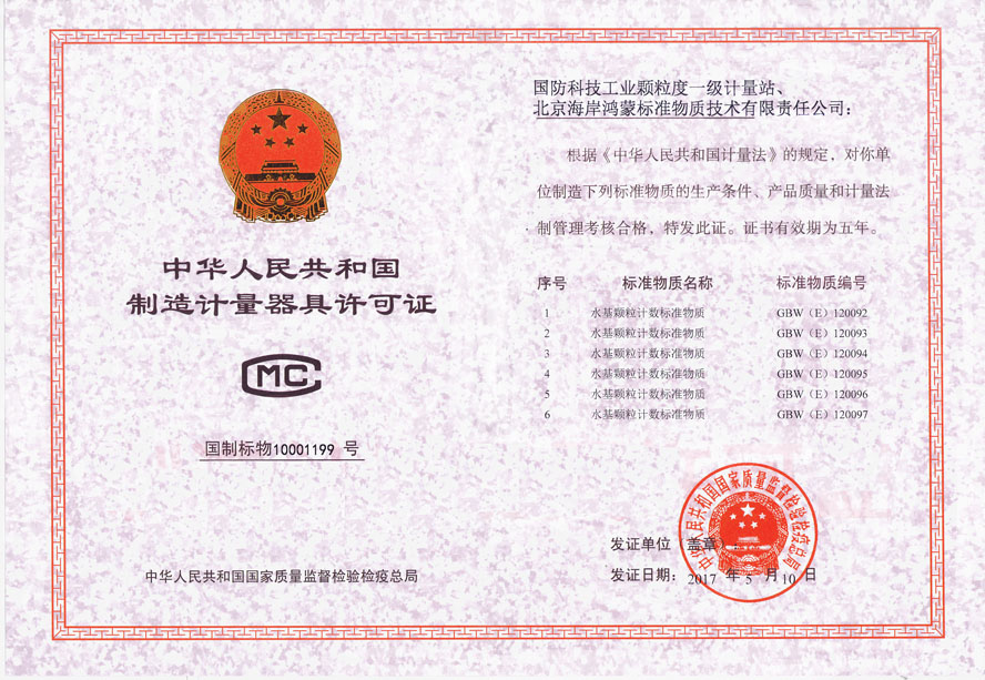 应用领域:颗粒计数标准物质用途:本标准物质用于水基液体颗粒计数器检定校准以及水过滤装置过滤效率性能检测。