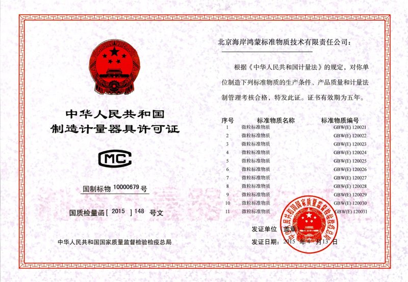 标准物质用途:多种粒度测定仪的标定、日常分析和检测、仪器校准。