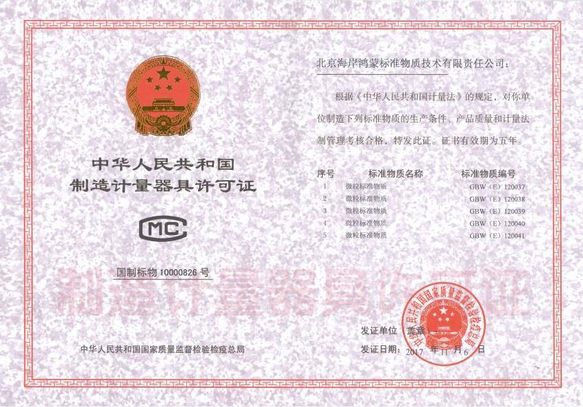 许可证书:GBW(E)