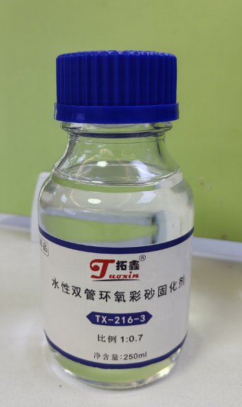 本产品是一款纯固含的水溶性环氧固化剂,是由环氧树、脂环胺及多官能团胺体通过合成反应生成的水溶性环氧固化剂。无刺激性气味,通用性好,可使用时间适中,固化速度快,硬度上升快,柔韧性好,收缩率低;主要应用在水性环氧彩砂填缝剂、水性油墨、水性金属涂料等产品。