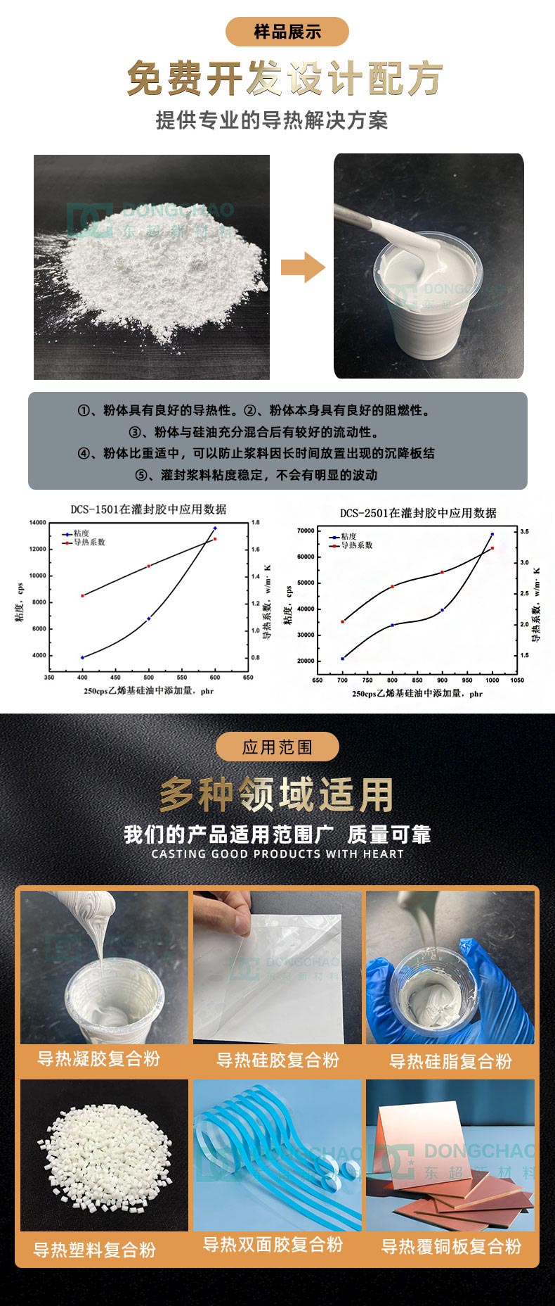 DCS-1505C 专为需要高效热管理的应用而设计,常作为导热灌封胶等材料的导热增强剂,以提高整体的热传导效率。
