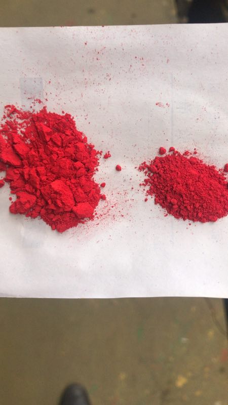 外形为艳红色粉末和客户来样。色光鲜艳,着色力好、遮盖力优良,而且耐晒、耐酸、耐碱性好