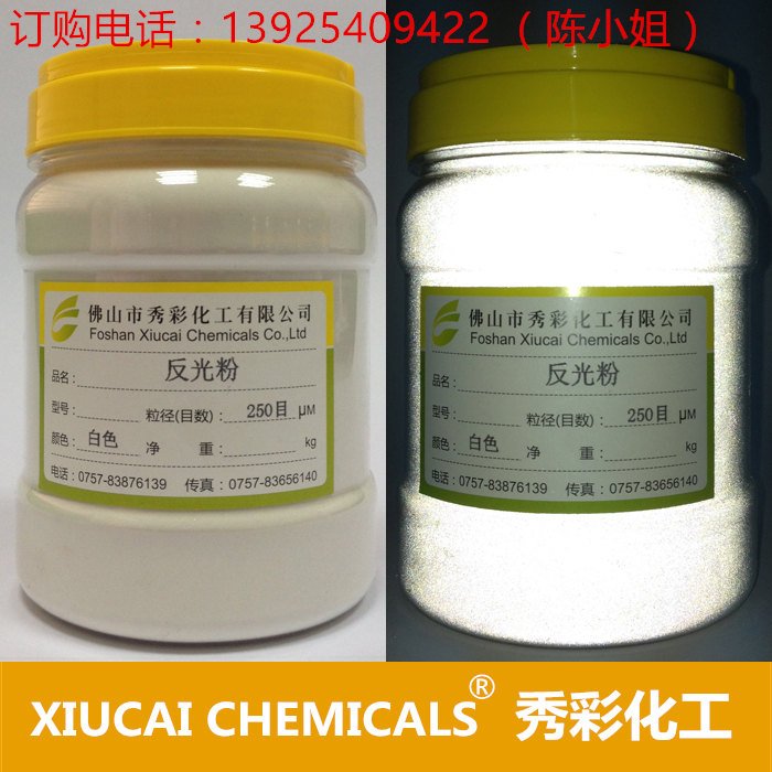 秀彩化工反光粉属于高折射玻璃微珠(反光粉)主要具有回归反射特性.所谓回归反射是一种光学现象,当光线照射到透镜之类的物体上,经折射后聚集,再从焦点反射又经透镜折射回归光源方向.制品采用高折射率玻璃珠后半表面镀铝作为后向反射器,具有极强的逆向回归反射性能,能将85%的光线直接反射回光源处。回归反射所造成的反光亮度,可使驾驶人员和带光源的夜间作业人员在夜间或视野不佳的情况下清楚地看见行人和障碍目标,确保双方安全。
