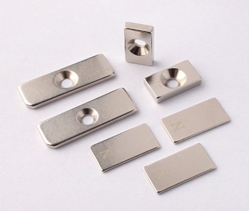 即在圆形,方形,柱形,环形,瓦形磁铁的基础上打一个沉头孔,配合螺丝一起使用。