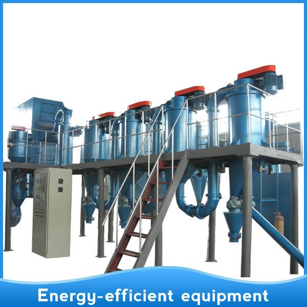 (5)易燃、易爆、易氧化的物料可用惰性气体作介质实现闭路分级,惰性气体循环使用。 ◇多级分级串联:可连机配置1~5级气流分级机,将物料按粒度段大小分成若干粒度段生产粒度要求分布窄的产品。
