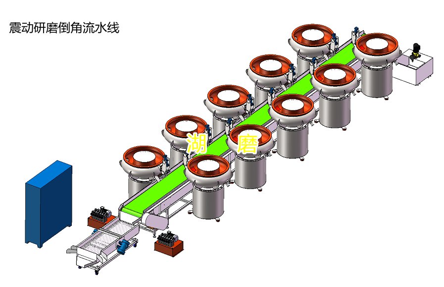 磁材研磨倒角震动研磨机流水线,主要用于磁性材料产品及金属工件产品的研磨倒角,我司是抛光研磨行业龙头企业