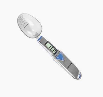 便于抓握的手柄上配有数字LCD显示屏及电池指示器勺上标有5-30ml刻度,5ml增量,皮重、冷冻和显示三个软触按键,能够将克单位转换为盎司单位计量