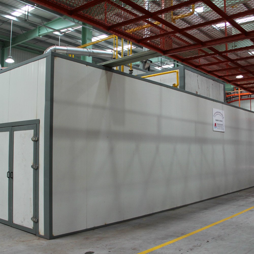 涂装工序中为减少环境对涂装品质的影响及涂装工艺对车间大环境的影响,对喷粉工艺段、喷漆工艺段等进行隔离设置,搭建隔离房。隔离房可用阻燃库板、玻璃等材质制作。