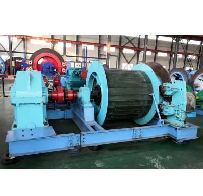 当启动主电机时,由电动机转子通过弹性联轴器将动力传递到减速器的高速轴上,经过减速器传动减速后,再由减速器的转动轴通过齿轮联轴器传递给主轴装置,若不断改变电动机的转向,可使卷筒进行缠绕或放松钢丝绳,使提升容器在井筒 作上下往返周期性运动。
