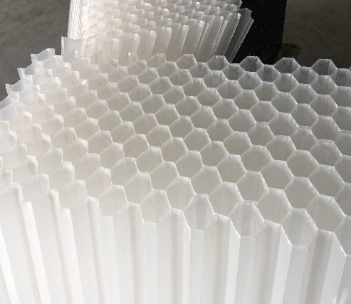 1、打开蜂窝斜管包装,将**片斜管填料平放于地面,取第二片斜管填料置于**片填料之上,检查斜管填料的切口,必须保证60°角、并呈六角蜂窝状,检查无误后开始烫接粘接点;