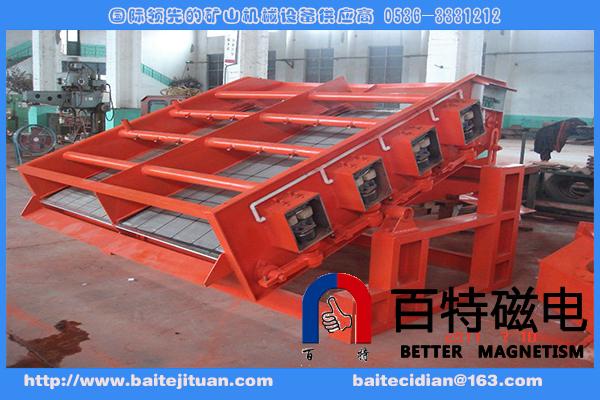 高频电磁振网是采用结构亲颖的电磁激振器做动力源,每台筛机布置若干组电磁激振器,这些激振器由电控箱控制,可分别独立调节电磁激振器的震动力的大小,从而达到分选设计目的。电磁激振器是由电磁铁、振动杆、振动臂、激打器、橡胶弹簧等组成。