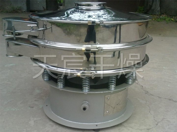 本机由料斗、振荡室、联轴器、电机组成。振荡室内有偏心轮、橡胶软件、主轴、轴承等组成。可调节的偏心重锤经马达驱动传达到主轴中心线,在不平衡的状态下产生离心力,使物料强度改变,在筛内形成轨道旋涡。重锤调节器的振幅大小可根据不同物料和筛网进行调节。整机结构紧密、体积小、不扬尘、噪音低、质量高、能耗低、移动维修方便。