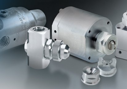 可调节的喷雾喷嘴提供独立的液流、雾化空气和风扇压力控制以便对流量、颗粒大小、喷雾分布和覆盖范围进行微调。选项包括清除/断流针、数百种流量和防挂须的气帽,并可以防止喷嘴周围聚集。