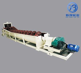本机水槽成倾斜安装,倾角大小根据工艺流程中设备配置情况确定,传动装置带动螺旋在槽内旋转,经磨细的矿浆从侧面进料进料口进入槽内,则在槽的下端形成一个矿浆沉降区,其表面积和容积决定于水槽倾斜角大小和溢流堰高度。低速回转的螺旋能起一定的搅拌作用,矿浆经搅拌后,轻、细颗粒悬浮于上面形成溢流,由水槽端面溢流堰溢出,流入下一道选矿工序;粗重的颗粒沉于槽底形成返沙,由螺旋运到排矿口排出。