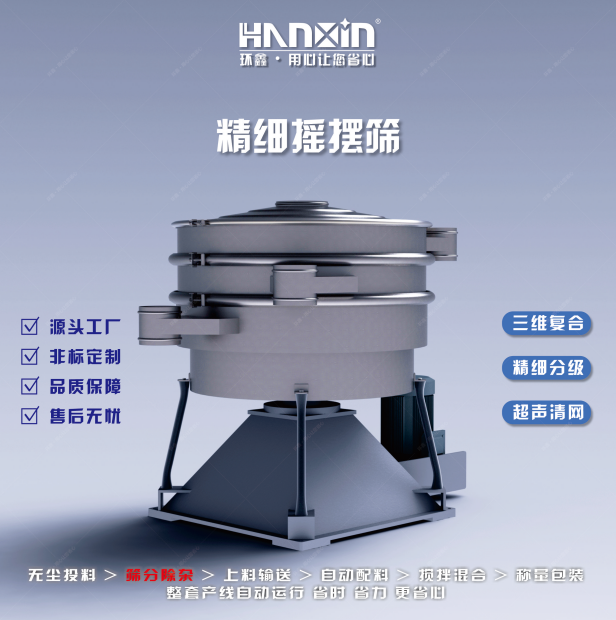 摇摆筛是目前国内处理难筛分物料的机械设备,主要针对粉体,小颗粒物料的筛分工作,被广泛的应用在冶炼,建材。耐火材料,煤炭,医药,食品等行业。