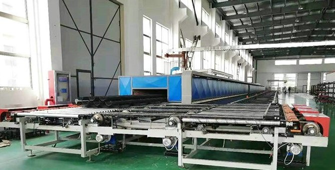 (2)隔焰辊道窑:火焰一般只,进入与窑道隔离的马弗道中,通过隔焰板将热量辐射给制品并对其进行加热。