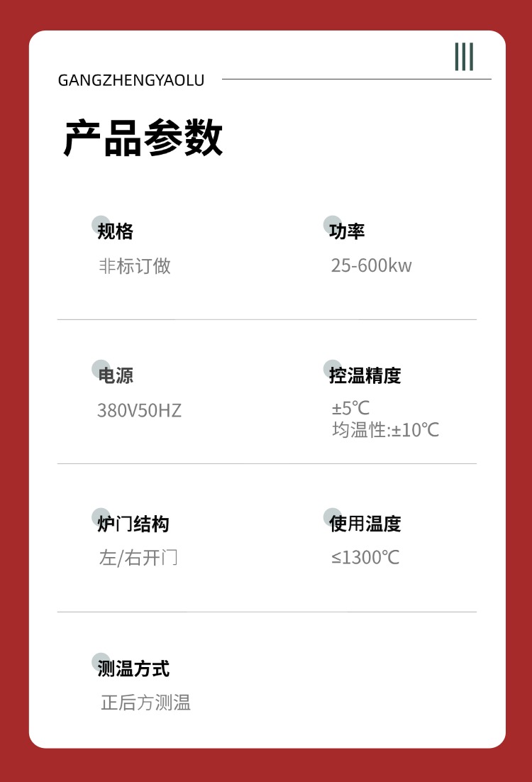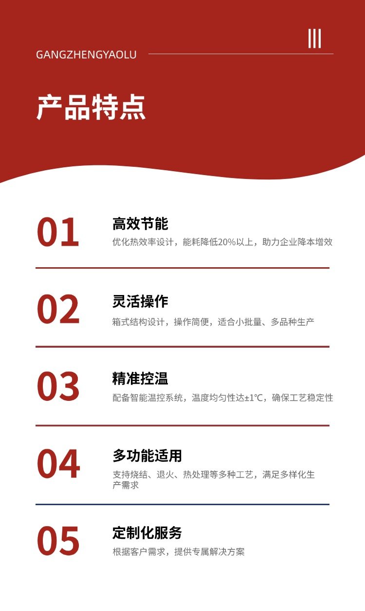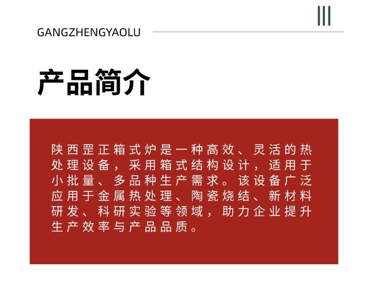 陕西罡正箱式炉是一种高效、灵活的热处理设备,采用箱式结构设计,适用于小批量、多品种生产需求。该设备广泛应用于金属热处理、陶瓷烧结、新材料研发、科研实验等领域,助力企业提升生产效率与产品品质。