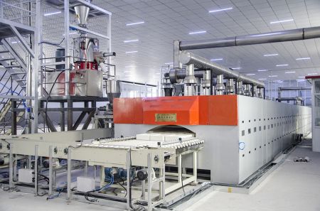 本系统从配比完成后实现自动称量装料,抚平,自动装载运输至窑炉系统,通过高温烧结后自动移载倒料,清扫载体,做到密闭循环。