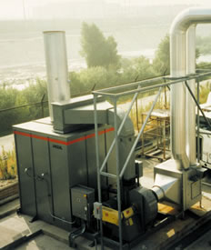 来自工艺的VOCs和有毒气体通过系统风机推进或者吸进焚化炉内的换热器。废气在通过换热器流入燃烧室时被逐渐加热。在燃烧机处,制程废气升高到催化剂操作温度。当废气经过催化剂时会发生放热反应。污染物被转化为二氧化碳,水汽和热量。