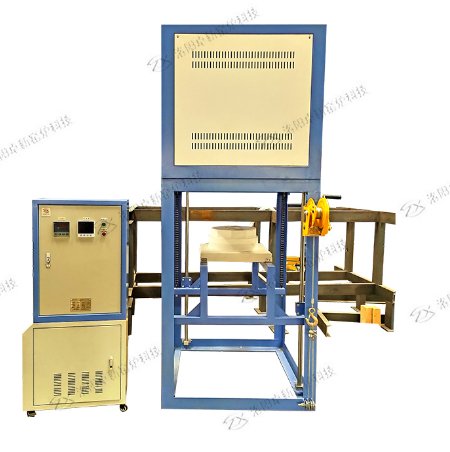 高温升降炉结构,装料台有轨道移出到指定位置进行装料卸料工件堆放在工作台上,上下电动传动,炉门上下按钮开关电动控制;炉膛四面加热,炉温均匀性非常好,的炉膛材料和稳定的温度控制系统。炉衬采用轻质氧化铝纤维板拼装而成的炉体,炉底采用轻质保温砖和重质可承重耐火砖砌筑,炉门车采用机械传动
