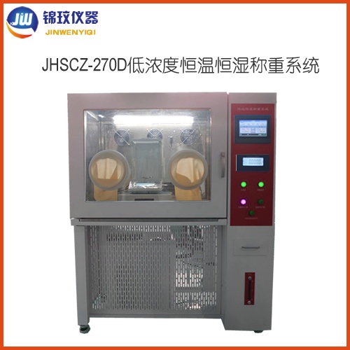 JHSCZ-270D恒温恒湿称重系统也称低浓度称重系统、滤膜称重系统。本仪器在恒温恒湿箱体内,将要称量滤膜、滤筒或低浓度采样头恒温恒湿24小时后,进行称重,该系统有效解决了实验室环境温湿度变化、空气流速、室内静电、天平振动等对样品称量结果的影响,提高了称量准确性,整个称量过程严格按照环保部HJ 656-2013、HJ 618-2013和HJ 836-2017等标准要求,是空气颗粒物滤膜或固定污染源低浓度采样头称重和分析质控环节的重要装备。用于环境空气和固定污染源中采样滤膜高精度的称量以及源解析项目中,主要适用于环保、卫生、劳动、安监、军事、科研、教育等部门。