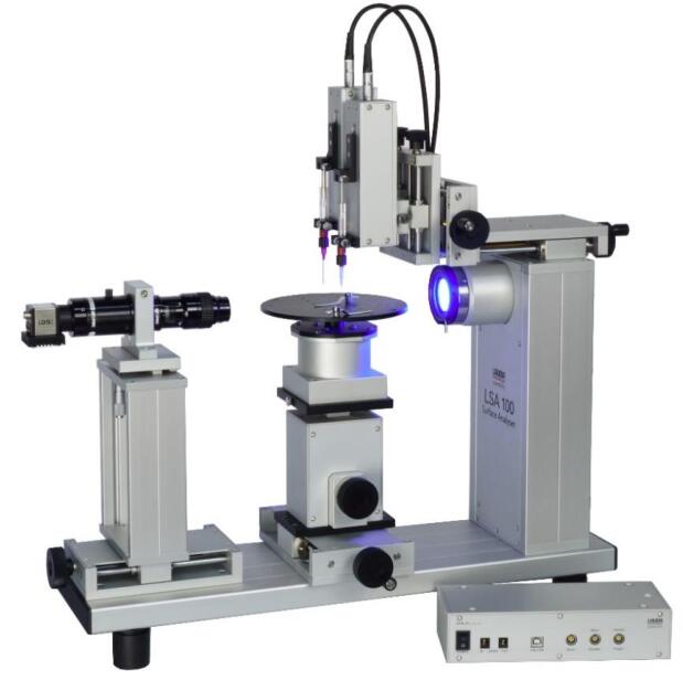 LSA100RF光学滞留力测量仪由德国LAUDA Scientific公司生产,它不仅具备一般光学接触角测量仪的常规功能,而且能够直接测量液体和固体材料之间界面上的相互作用力,即滞留力,是表面分析仪器领域中的一个开拓性创新!