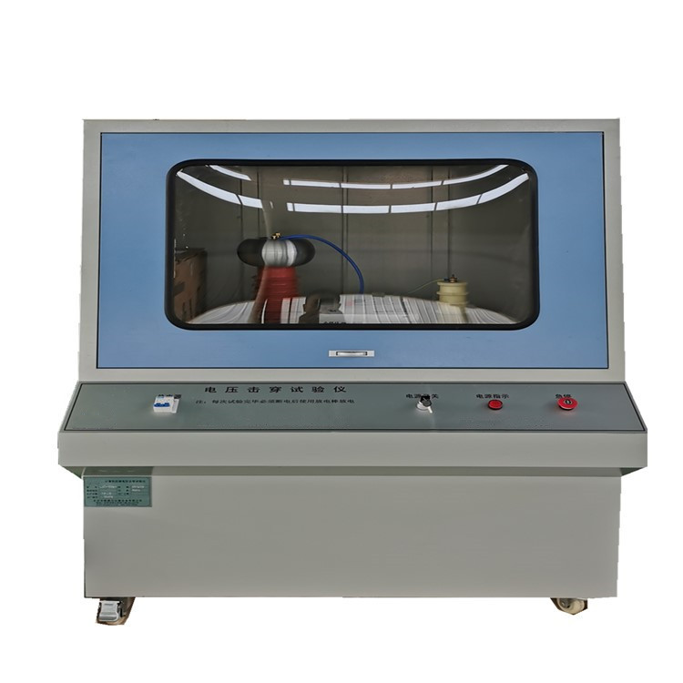 1.试验在试验箱中进行,试样可放在空气中或变压器油中。100KV电压头安全放电距离对四周均小于200mm,试验时即使触到箱壁也不会发生危险。