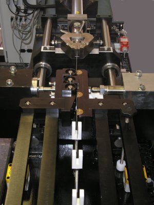 试样夹具由两个关节臂组成,分担拉拔工具上的受力。力传感器安装在试验机台架的一个固定点上,用于测量作用在臂上的拉力。拉拔工具上的夹紧力由气缸施加,大小可由力传感器测量并反馈,并受比例控制阀调控。