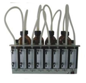 把水样或经过预处理水样注入培养瓶内,同时在瓶口的吸收杯内放入二氧化碳吸收剂(NaOH),然后将培养瓶密封,置于生化培养箱内,当被测样品在20±1℃条件下恒温进行五日培养后,在一定的搅拌速度下,瓶内的水样进行生物氧化反应。有机物转变成氮、碳和硫的氧化物,并产生二氧化碳气体被氢氧化钠吸收,而培养瓶内上部空间的氧气不断地供给水样中微生物的需氧量,培养瓶内产生了压力差,通过检测玻璃管中汞的高度, 即可计算出水样在规定测定期间内的BOD值。