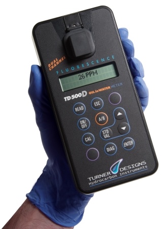 美国特纳TD-500D便携式水中油分析仪,是一款用正己烷作为萃取剂的紫外荧光测油仪,可快速、准确、可靠测量水中石油类(原油、凝析油、柴油、润滑油、燃料油、机油和其他精炼碳氢化合物),量程为0.005~1000mg/L,精度和重复性≤±2%。