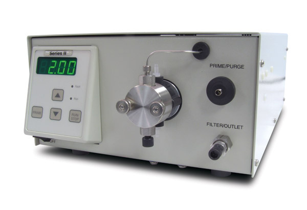 Series Ⅲ泵特点: ?◇高流量、高压力、高精度 ?◇具有远程控制功能 ?◇双单向阀设计保证液体不回流 ?◇带有自清洗泵头、快速排液阀 ?◇不锈钢流路(可换PEEK接头,) ?◇压力监控系统----高低压保护,自动停泵 ?◇可连续工作,流速稳定,**程度的降低对色谱柱的损害。 ?◇在线自清洗设计和更换方便的密封圈大大降低了泵的使用费用。 ?◇按键设计操作简单,并有LED显示。 ?◇RS-232接口实现遥控输入