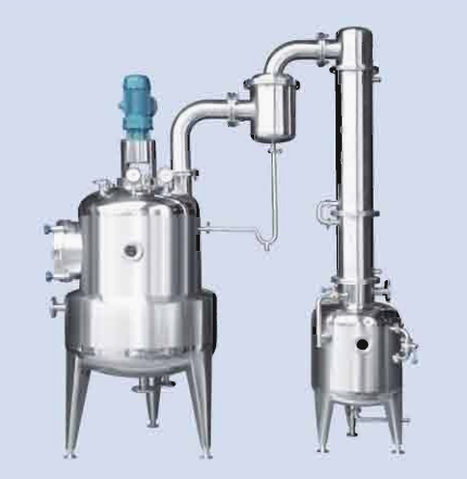 物料抽入浓缩罐内,利用夹套通蒸汽进行加热,加料高度以达到罐体视镜中心为宜,上升的蒸汽由**冷凝器控制回流量,根据不同物料控制罐内温度夹带的泡沫及部分高沸点液体从气液分离器分离返回浓缩罐内,对于工业溶剂(酒精)经第二冷凝和冷却器*后在受液槽取得。本设备可以常压减压生产,可以间歇或连续生产,当连续生产进料时其进料管应加流量计,在连续减压生产过程中对浓缩罐出料要先使罐内恢复常压后方能出料,符合(GMP)标准要求。
