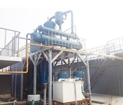 目前,在无机盐结晶装置中,往往因为设备只能间歇操作,造成设备投资大、能耗大、占地面积大、操作人员多、生产效率低、 结晶颗粒产品品质低等现象,近年来,国际市场和国内市场对粗 盐的需求量呈上升趋势,对已定的成品盐粒径,还要求粒径范围 尽可能窄。国内真空制盐的粒度偏细,且均匀性差,适当加大盐粒度,并提高均匀性,会使得盐结晶产品更具有市场竞争力,鉴于此,我公司新研发生产的一种无机盐新型连续结晶装置,经过 前道蒸发工序来的饱和溶液(温度为60~90℃),计量进入连续 结晶装置中,先在真空状态下闪蒸一部分溶剂,再流经列管式冷 却器和强制循环泵,使得温度降至40~60℃,进入连续结晶装置 里的导流锥形筒中,溶液沿着导流锥形筒向上升至蒸发液面,此时,在真空条件下,因为溶剂的不断蒸发,浓度达到过饱和,而 使得溶质析出,在蒸发液面处大量的晶体不断析出,并相互吸附 逐渐长大,在循环泵的吸力作用和晶体自重的重力下,带有大量 晶体的溶液沿着导流锥形筒的外面向下流动,晶体在重力作用下 继续向下流到装置底部的浮选器中,因为溶质的析出而消除了过饱和度的饱和溶液则进入强制循环泵的进口,晶体和进入列管冷却器的饱和溶液的分离是靠隔离筒完成的,强制循环方式采用了反循环方式,并采用后开式叶轮,具有流道大,转速慢,对晶体的破碎作用小,进入装置底部浮选器里的晶体,从浮选器底部进液管进入的溶液,经过浮选器内部的再分布器使盐水均匀向上方流动,盐晶体在浮选器中呈流化态悬浮,在浮选器的上端有喇叭形导流器,携带细晶的浮选盐水沿喇叭形导流器与浮选器筒体之间的环形区向上方流动,避免与下降的盐浆流发生干扰。浮选液向上经过喇叭形导流器上端的进液口,绕过环形隔离圈进入连续冷却结晶器内。此隔离圈能有效阻止连续冷却结晶器流下的盐浆经进液口的短路,而只能经过喇叭形导流器向下进入浮选器。经过浮选达到预定粒度的浓缩盐浆从浮选器下部的盐浆出口连续不断的排出。