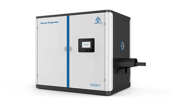 VESALT刮板式热泵低温真空干燥结晶系统是一种水平方向的蒸发器,通过一个专门设计的泵使蒸发室的真空压力达到≈33 mbar,使水在35°C沸腾;