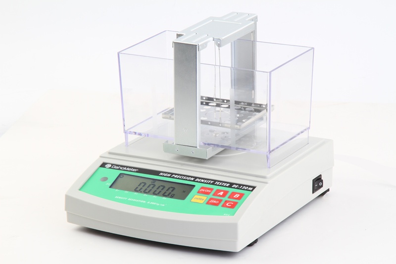 橡胶密度计DE-120M由专注于密度测试研究与开发的品牌厂商DahoMeter『达宏美拓』推出,密度精度万分之一,装配Free Flip免掀盖一体成型铝合金测量平台及大容量水槽,使得操作更为简便、更为快速、更为人性化、精度更为精准等优点;可显示混合物主要材质含量百分比;能自动判定待测样品合格与否;具有警报提示功能;适合新材料研究与开发。