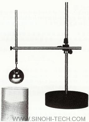 | 将样品材料装入一个足够大的玻璃烧杯中,使密度球能浸入到支持杆颈部的中央。使用一个温度控制箱或一个水浴箱将密度球和样品材料加热到20 C。然后将装有样品材料的烧杯放到实验室天平上,将密度球的支持杆夹紧到支撑架上,使得密度球能轻易的上下移动。°0.5± 在475/I型中,烧杯及液体的重量必须精确到±10mg,而在475/III型中则须精确到±1mg。装有样品的烧杯必须仍放在天平上,用手慢慢将球体降到液体中直到浸没至支持杆颈部的中央,重复称重程序。 ,单位g/mlr以下方程用于计算,在一测试温度t时的样品的密度 W2-W1 P= —————— +pl V W1:在浸入球前,载有样品的烧杯重量,g W2:在浸入球后,天平显示的重量,g V:球体在浸入到支持杆颈部中央处的体积,ml pL:空气密度=0.0012g/ml *终的密度应符合0.001g/ml的精度并列出温度 注意: 通过小心搅拌或让试液静止一会以消除测试液中的气泡,球表面的气泡可通过相同的旋转方法除去。用此方法试密度,只适用于不迅速产生沉淀的液体。迅速产生沉淀的液体可使用290型比重杯。 | |