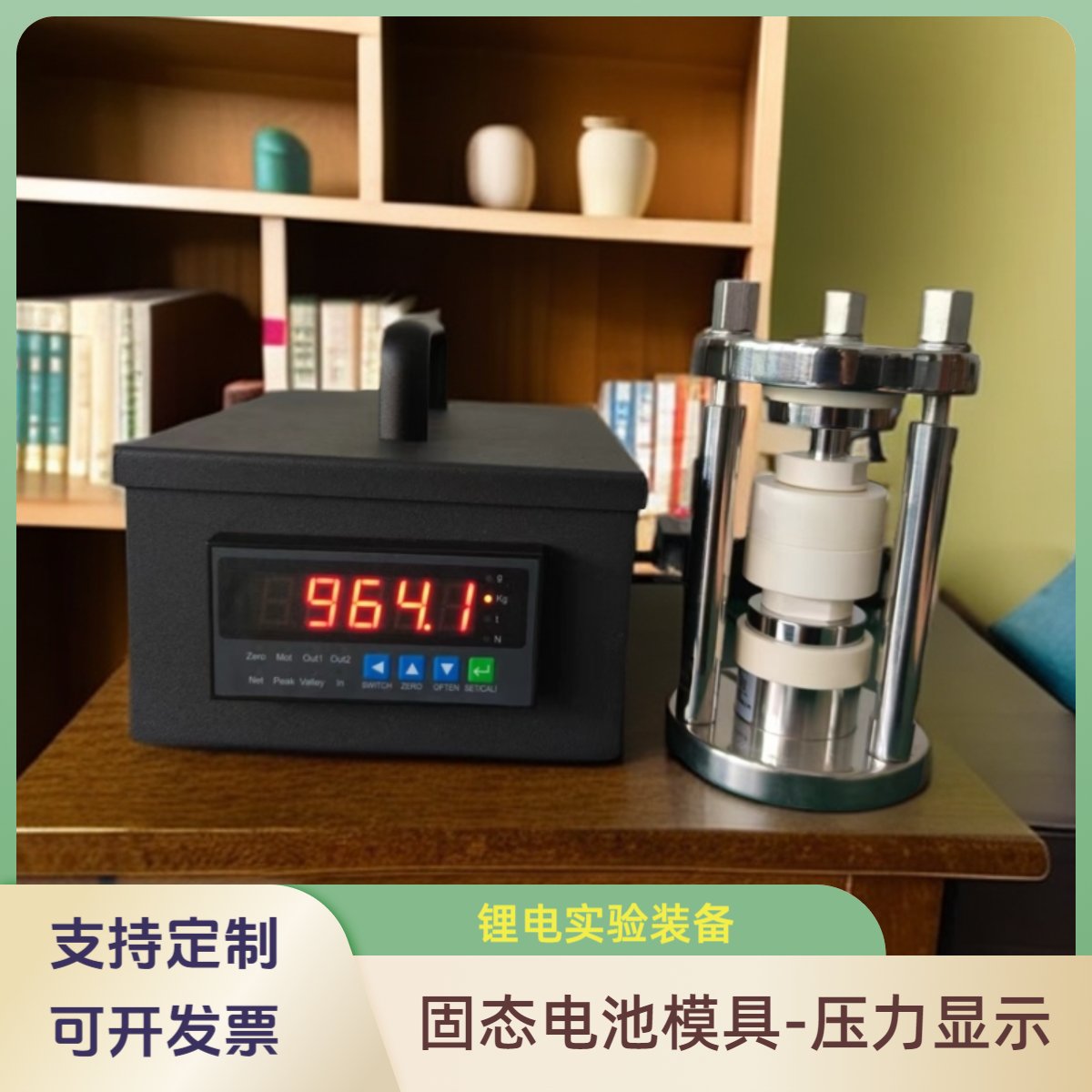 4、固态电池压力显示模具:在原有的固态电池模具基础上,增加压力装置,并配带压力显示仪器,可以精准控制压力,对固态电池进行加压测试,确保电池的性能和安全性。