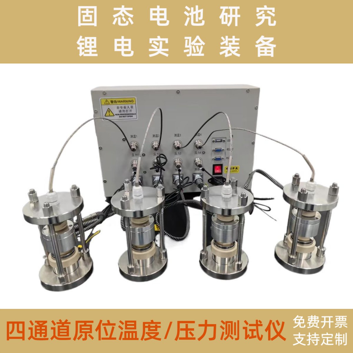 >四通道原位固态电池温度·压力测试系统 模具仪器 锂电实验装备