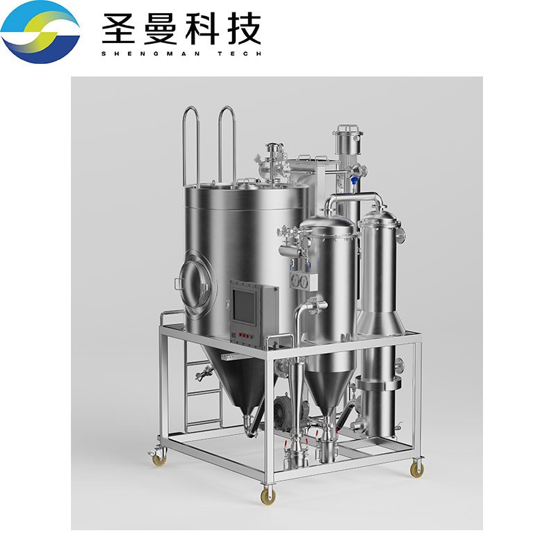 在喷雾干燥塔的腔体内,可泵抽的液体通过泵体输送至雾化喷嘴形成细小的液滴,同时经过处理和加热的工业热风与液滴接触,液滴中的溶剂蒸发后,固形物形成粉体或颗粒。这些固形物随着工艺风快速流动,在旋风收集器或袋式过滤系统位置从工艺风中分离并且被收集起来。在干燥过程中,蒸发吸热,同时形成的固形物与热风接触时间短。结合产品处方与工业参数优化,可以使产品中的活性成分不会受到损害,广泛用于制药行业的API及原辅料生产、微囊包埋、干混悬剂以及其他行业的各种产品。