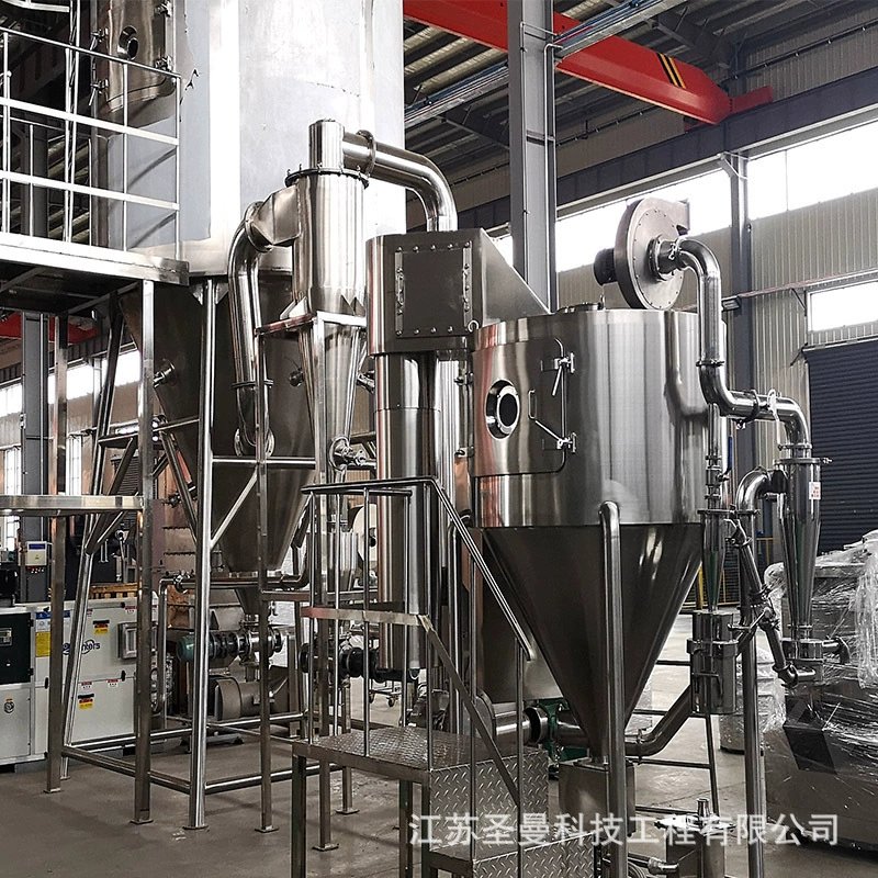 喷雾干燥通常用于处理湿含量40%-60%的溶液,能一次干燥成粉状产品,大部分产品干燥后不需要再进行粉碎和筛选,从而减少了生产工序,简化了生产工艺流程。同时,产品具有良好的分散性、流动性和溶解性,由于干燥过程是在空气中完成的,产品在本能保持与液滴相近似的球状,具有良好的流动性。
