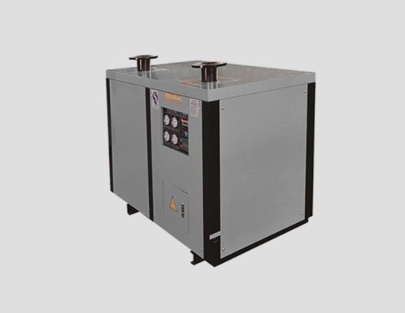 非循环式冷冻式干燥机采用了降温结露的工作原理,主要由热交换系统、制冷系统和电气控制系统三部分组成。压缩空气首先进入预冷却器进行气 - 气或气 - 水的热交换,除去一部分热能,然后进入冷热空气交换器,和已经从蒸发器出来被冷却到压力露点的冷空气进行热交换,使压缩空气的温度进一步降低。之后压缩空气进入蒸发器,与制冷剂进行热交换,压缩空气的温度降至0-8°C,空气中的水份在此温度下析出,通过气水分离器分离后,经过自动排水器排出。而干燥的低温空气则进入冷热空气交换器进行热交换,温度升高后输出。