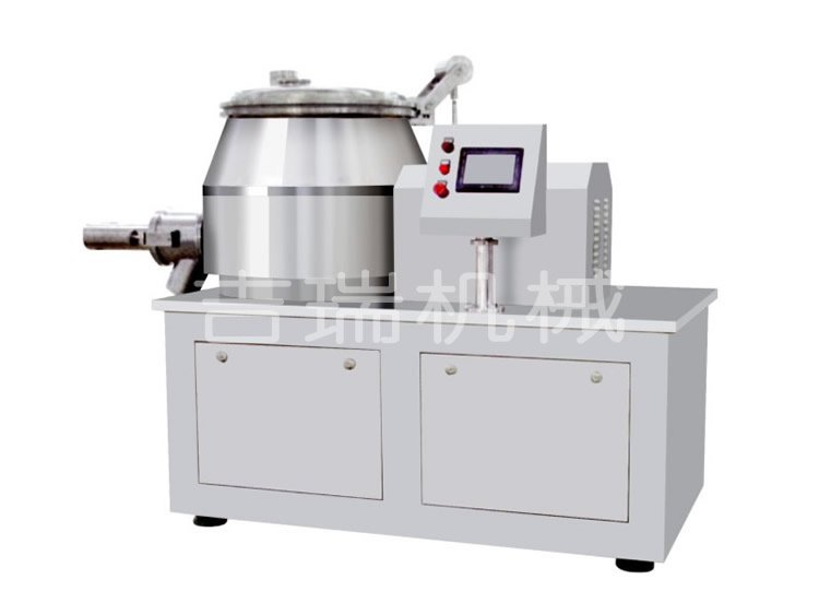粉状物料在容器中由于混合桨的搅拌作用,呈半流动状态并充分混合,然后注入粘合剂(中成药流浸膏等流体)使之成为湿润软材,经整粒桨(制粒刀)切割成为均匀的湿颗粒。