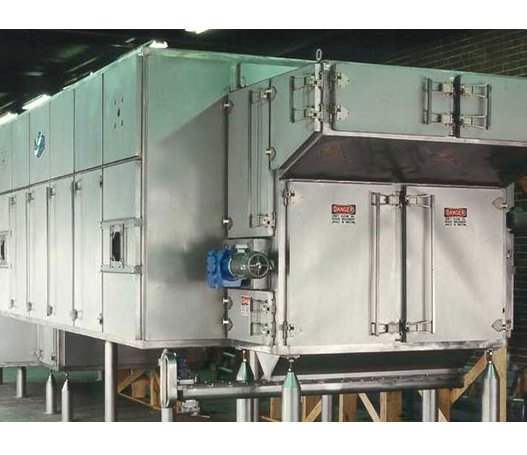 他们包括向上或者向下的中高速直接穿透物料的气流配置和独立的区间温度控制部分。由于穿透流化床的气流需要返回到一组风机上,这些风机沿着烘干机长度方向布置,区间部分很容易进行分隔。每台输送机都独立穿过烘干机,容许根据产品干燥特性的温度剖面处理,以达到**的烘干效率。